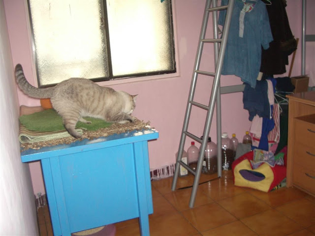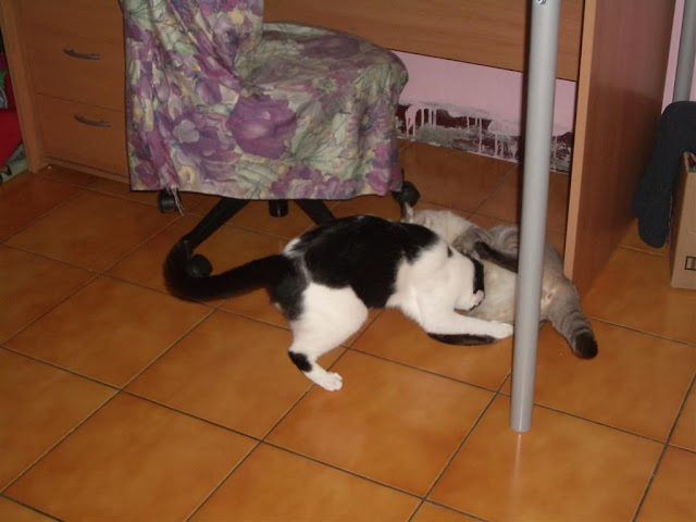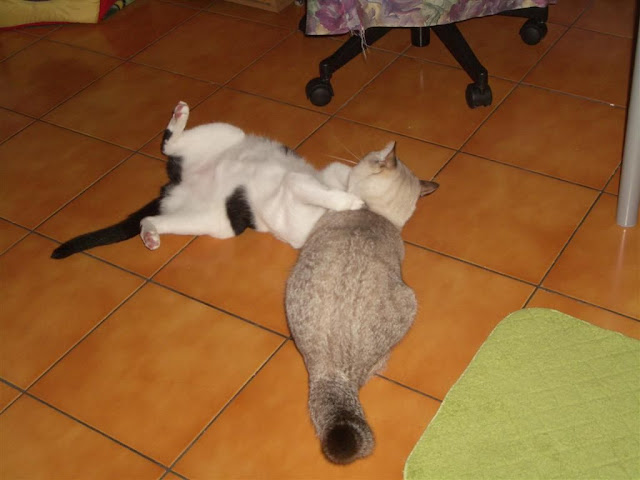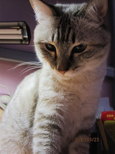 今天.... 努努來偶門家... 滿那個偶算算看.. 手指頭不夠用.... 再加脚一起算......... 差一個... 12+9個月 ....21個月 可是偶還沒寫到這天的咩.... 不過 這些天以來有按日期整理還有上傳照片( 最好按日期放.. ) 所以... 今天可以看一下牠的生活照... 今天都幹嘛了呀.... 凌晨.... 小喵有叫叫....( 是努努...非小三八是也 ) 讓牠出來打地舖吧 http://lh5.ggpht.com/_tCv0Uw6_Ev8/S6i0huLuU0I/AAAAAAAAFTg/9DWTQzMAcUk/s640/IMGP7641%20%28Large%29.JPG 幫牠弄個山洞... 牠可以在�面小睡哦 http://lh4.ggpht.com/_tCv0Uw6_Ev8/S6i0k14AtyI/AAAAAAAAFUE/LfOKfSGo6lA/s512/IMGP7650%20%28Large%29.JPG 差不多快要凌晨1點吧... 房間門沒扣著 努努鑽出來... 躲在電視後面長巷中... 二顆閃閃的燈咧 http://lh3.ggpht.com/_tCv0Uw6_Ev8/S6eymYEqttI/AAAAAAAAFC8/W2vOwFMcrh0/s512/IMGP7652%20%28Large%29.JPG 費了番唇舌.... 才抱出來.... 好好唸一下牠.... ( 其實是抱抱啦... ) http://lh5.ggpht.com/_tCv0Uw6_Ev8/S6eynScMRxI/AAAAAAAAFDE/BhejOuSn3Ws/s640/IMGP7657%20%28Large%29.JPG 凌晨1點21.... 看到努努在劇烈作嘔中 現在知道了 不會驚慌失措的衝進去 讓牠留在原地吐出來吧 ( 不然沒吐完... 或跑別處去吐 ) 吐完後.. 偶才進去 這是偶看到的第一現場... http://lh3.ggpht.com/_tCv0Uw6_Ev8/S6eywHw3vaI/AAAAAAAAFDM/kvKXXEDmHQ4/s640/IMG_0603%20%28Large%29.JPG 第二攤... 在桌底下的砂盆邊 http://lh6.ggpht.com/_tCv0Uw6_Ev8/S6eyxaI1eXI/AAAAAAAAFDY/RxFEPHs1Bxs/s640/IMGP7658%20%28Large%29.JPG 像泡沫... http://lh5.ggpht.com/_tCv0Uw6_Ev8/S6eyyoaDYPI/AAAAAAAAFDk/nO9okCQ0-ZM/s512/IMGP7661%20%28Large%29.JPG 妮... 還好吧...??? http://lh5.ggpht.com/_tCv0Uw6_Ev8/S6eyzCI9bGI/AAAAAAAAFDo/e9TJ0ePUoMM/s512/IMGP7662%20%28Large%29.JPG 連這小番喵都... 縮在這兒看偶清理.( 擦乾淨後... 用酒精噴) http://lh6.ggpht.com/_tCv0Uw6_Ev8/S6eyzs-Y4AI/AAAAAAAAFDs/iVIV6lZT5gs/s640/IMGP7663%20%28Large%29.JPG 清好後.... 偶拿該洗的去稍微沖一下 睡起來再洗吧... 才一下下吧.... 偶回到客廳時 看到努努.... 心想不妙.... 果然.... 小三八當然也在外面囉... ( 連努努乖寶寶都出來了咩... ) 先把努努弄進去後 再來處理小喵 http://lh3.ggpht.com/_tCv0Uw6_Ev8/S6ey8bAaQ4I/AAAAAAAAFEU/dSMgmoqMSkk/s640/IMG_0609%20%28Large%29.JPG 用逗喵棒引牠出來 ... ( 有點難... 因為牠很精 ) 所以偶要比牠更精.... 假裝不在意牠 http://lh4.ggpht.com/_tCv0Uw6_Ev8/S6ey9Ia06iI/AAAAAAAAFEc/jzEPn4oLpvA/s512/IMG_0611%20%28Large%29.JPG 這麼近時... 開始歹喵了... http://lh3.ggpht.com/_tCv0Uw6_Ev8/S6ey-G1XneI/AAAAAAAAFEo/MpZFtAS_SxI/s640/IMG_0614%20%28Large%29.JPG 小姐姐今天臨時出來睡... 地舖 因為房間有蚊子... 喵爸打到一隻 偶也打到一隻咩.... 小姐姐被叮的好多包包呀 http://lh3.ggpht.com/_tCv0Uw6_Ev8/S6iBVXsRqJI/AAAAAAAAFIQ/nWnkXZ2euCQ/s640/IMG_0617%20%28Large%29.JPG 近凌晨3點左右 偶要躺了 再進去巡一巡 ( 房間只有二喵... 小姐姐睡外面了 ) http://lh5.ggpht.com/_tCv0Uw6_Ev8/S6iBFKrEq2I/AAAAAAAAFHY/EAT-iTmXxg0/s512/IMG_0620%20%28Large%29.JPG 舔毛毛... 忘了收的舌 http://lh4.ggpht.com/_tCv0Uw6_Ev8/S6iBF_N4RaI/AAAAAAAAFHg/rJSUo8c7HK4/s512/IMG_0623%20%28Large%29.JPG 乖乖睡覺哦.... http://lh4.ggpht.com/_tCv0Uw6_Ev8/S6iBHRH6NgI/AAAAAAAAFHw/yj9w2hxlZvc/s512/IMG_0636%20%28Large%29.JPG 幫牠擦了粉刺... 再看看... 希望快點好 http://lh4.ggpht.com/_tCv0Uw6_Ev8/S6iBHo0JJ2I/AAAAAAAAFH0/4eRAVqKKoL4/s512/IMG_0638%20%28Large%29.JPG 粉紅快乾毯... 一條拿去洗了 把桌上的拿下來讓努努用.... http://lh4.ggpht.com/_tCv0Uw6_Ev8/S6iBIai-h3I/AAAAAAAAFH8/c8a0FgHwuKE/s512/IMG_0641%20%28Large%29.JPG 關門前.... 小喵們.... 晚安唷 !!! http://lh3.ggpht.com/_tCv0Uw6_Ev8/S6iBJHfGiZI/AAAAAAAAFIA/0DvGCX74lmI/s640/IMG_0644%20%28Large%29.JPG 中午弄了碗麵吃... 昨天才買的麻醬.... 花了不少大洋.....( 不是賣場買的那種啦... ) http://lh4.ggpht.com/_tCv0Uw6_Ev8/S6iHWtSNoSI/AAAAAAAAFKM/hitV_SqPNzk/s640/IMG_0707%20%28Large%29.JPG 二支湯匙... 因為 一支搯白芝麻醬 一支搯黑芝麻醬... 都要乾乾的不能有水 偶也不要共用黑白混一起 所以... 二支 ( 碗偶洗的... 要用幾支都行咩 ) http://lh5.ggpht.com/_tCv0Uw6_Ev8/S6iHXioOlFI/AAAAAAAAFKU/0B7CJSO5EVE/s640/IMG_0712%20%28Large%29.JPG 拌一拌... 一半白一半黑 加點醋 加點蒜泥醬油膏 啦一啦... 看起來張張的 http://lh4.ggpht.com/_tCv0Uw6_Ev8/S6iHX1goaRI/AAAAAAAAFKY/afOxfAe2cjA/s640/IMG_0718%20%28Large%29.JPG 以前偶都嘛加黑芝麻顆粒 炒菜灑一點 拌麵也加一點吃.... 所以黑芝麻偶很愛 http://lh3.ggpht.com/_tCv0Uw6_Ev8/S6iHZNu2hgI/AAAAAAAAFKg/0b1-0OmKBPo/s640/IMG_0729%20%28Large%29.JPG 家中沒有小白菜 只有青豆 剪一剪... 湊個人數.. http://lh3.ggpht.com/_tCv0Uw6_Ev8/S6iHZibQF3I/AAAAAAAAFKk/9tarzWJt8Xo/s640/IMG_0732%20%28Large%29.JPG 因為小小顆..... 不用煮久... 就不會有青青的 豆青菜味 http://lh3.ggpht.com/_tCv0Uw6_Ev8/S6iHaPu-XWI/AAAAAAAAFKo/7l4mH_lblbE/s640/IMG_0733%20%28Large%29.JPG 吃光光... 可是還是張張的咩 http://lh3.ggpht.com/_tCv0Uw6_Ev8/S6iHai1wLMI/AAAAAAAAFKs/qc43k7KEqLg/s640/IMG_0735%20%28Large%29.JPG 下午... 沒啥特別的事 就是打架吧... http://lh6.ggpht.com/_tCv0Uw6_Ev8/S6iYqGP15OI/AAAAAAAAFQQ/aEIfmsShd6M/s640/IMGP7737%20%28Large%29.JPG 今天努努變主動了喔.. 正慢慢走向小番喵... ( 有沒搞錯呀... 人家沒惹妮咩 ) http://lh3.ggpht.com/_tCv0Uw6_Ev8/S6iYsnVkX8I/AAAAAAAAFUI/6eXPOTgXwlY/s512/IMGP7744%20%28Large%29.JPG 追到這一頭來了 http://lh3.ggpht.com/_tCv0Uw6_Ev8/S6iYtKXOpRI/AAAAAAAAFQw/uith2F2giE4/s640/IMGP7745%20%28Large%29.JPG 磨拳中... http://lh5.ggpht.com/_tCv0Uw6_Ev8/S6iYt3bBjvI/AAAAAAAAFQ4/2HZke8mCgUM/s640/IMGP7748%20%28Large%29.JPG 小三八: 生日怎樣... 才沒在怕妮咧 http://lh4.ggpht.com/_tCv0Uw6_Ev8/S6iYvCFfvNI/AAAAAAAAFRE/weOKonjuFmQ/s640/IMGP7755%20%28